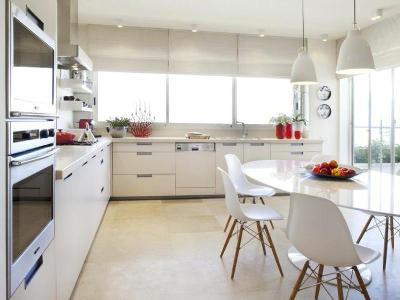 – По возможности кухня должна быть отдельным помещением, хотя зачастую она примыкает к гостиной или столовой, что допустимо. Организуйте кухонное пространство на периферии первого этажа коттеджа (независимо от его этажности), как можно дальше от бассейна, сауны, душевых и ванных комнат – чтобы избежать глобального конфликта стихий огня и воды. Оптимальный вариант – когда второй и третий этажи занимают детские, спальни и личные кабинеты. Расположение кухни возле этих комнат крайне неблагоприятно воздействует на их общую энергетику. Кроме того, по моим наблюдениям, «возвышение» кухни до уровня второго-третьего этажа приводит к пожарам, прорывам труб, неполадкам в работе бытовой техники.